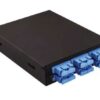 The patch panel can be loaded with a variety of adapters like ST, SC, FC and LC. All SC adapters are of duplex design and all LC adapters are quadduplex design. All this must be defined according to the part number during order. The fully loaded patch panel support termination up to 24 fibers.